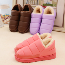 秋冬季时尚PU防水防滑男女情侣儿童保暖棉拖鞋纯色保暖地板拖棉鞋