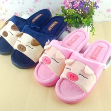 包邮春秋情侣小猪棉拖鞋男女室内家居卡通可爱中童防滑保暖