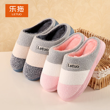 正品乐拖秋冬季新款防滑棉拖鞋女PU皮防水男居家木地板棉拖鞋包邮