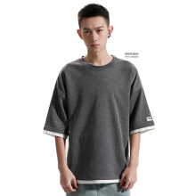 纯色原宿风半截袖男士夏季短袖学生潮牌宽松五分袖t恤圆领体恤衫