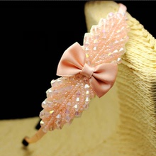 韩版发饰 波西米亚清新可爱 纯手工串珠粉色蝴蝶结头箍发卡发箍