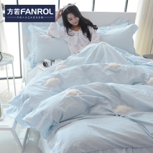 水洗棉四件套全棉纯色纯棉床单被套1.5/1.8/2.0m双人家用床上用品