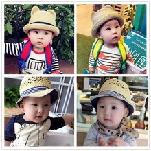 春季男童女童草帽沙滩遮阳帽子儿童礼帽渔夫帽宝宝潮帽宝宝帽子