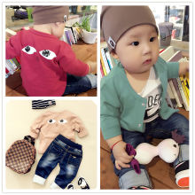 2017春款男宝宝百搭纯色圆领开衫 后背印花眼睛上衣1-2-3岁半外套
