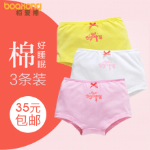 栢爱熊 三条学生纯棉儿童女三角裤中大童四季无骨透气女男童内裤