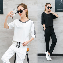 夏季新款韩版女装修身显瘦短袖t恤运动套装女哈伦裤长裤两件套潮