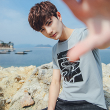 2017夏季上衣短袖T恤男方形印花 圆领韩版修身新青年学生打底衫潮