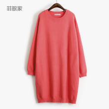 自制韩版羊毛毛线宽松大码套头超长款毛衣连衣裙打底针织衫秋冬女