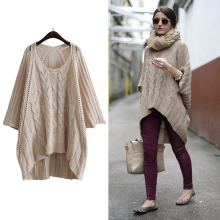 自制套头麻花针织衫蝙蝠袖宽松大码显瘦女装中长款九分袖毛衣秋冬
