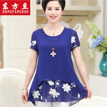 中老年女装夏装短袖t恤女大码中年妈妈装夏装短袖t恤雪纺衫上衣女