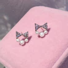 韩国925银针气质淑女仿珍珠蝴蝶结个性耳环耳钉饰品生日礼物吊坠