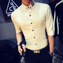夏季韩版修身男士薄款青年衬衫英伦风七分袖寸衣个性白色潮男衬衣
