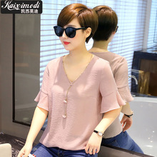 女装夏装2017新款潮大码宽松喇叭袖雪纺衫短袖韩版蕾丝上衣女T恤
