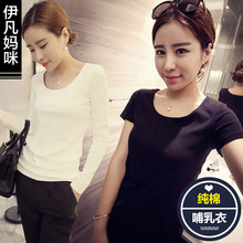 2017夏季新款孕妇时尚外出哺乳衣 短袖修身纯棉上衣产后t恤喂奶衣