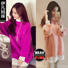蕾丝拼接长毛衣哺乳裙 秋冬季外出时尚打底衫喂奶期中长款连衣裙