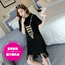 夏季哺乳裙外出短袖全棉喂奶衣时尚辣妈哺乳连衣裙宽松大码哺乳衣