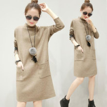 哺乳衣外出秋冬连衣裙宽松中长款针织打底衫毛衣产后外穿喂奶衣