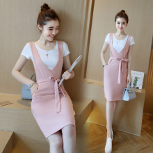 2016春季新款哺乳衣春装外出背带裙+条纹T恤两件套连衣裙喂奶衣