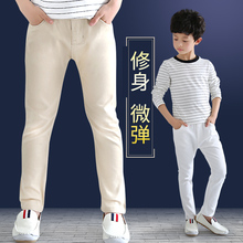 男童浅卡其色裤子男孩纯白色长裤儿童装修身弹力小脚休闲裤中大童