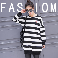 条纹哺乳T恤卫衣时尚2017春外出孕妇产后大码哺乳连衣裙喂奶上衣
