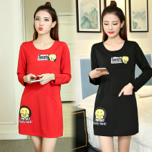 2017春秋季外出时尚中长款哺乳连衣裙产后T恤打底喂奶上衣哺乳装