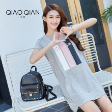 巧倩 宽松哺乳裙夏季外出产后喂奶衣连衣裙时尚短袖孕妇产妇睡裙