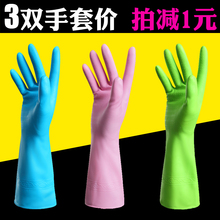 3双套装家务手套夏季加厚洗碗手套厨房乳胶橡胶手套薄款塑胶手套