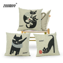 zuomee 创意靠垫 办公室靠枕 汽车沙发靠垫棉麻抱枕 童趣猫咪