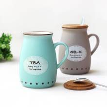 大肚牛奶杯 马克杯带盖勺可爱咖啡杯创意情侣水杯 复古色釉陶瓷杯
