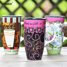 左米创意情侣马克杯 大容量杯子带盖水杯 欧式彩绘陶瓷杯