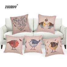 zuomee 办公室靠垫抱枕 居家沙发棉麻靠枕 枕垫水彩 画眉鸟系列