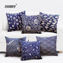 zuomee 办公室靠垫抱枕 居家沙发棉麻靠枕 枕垫 和风青花系列
