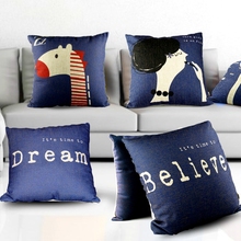 zuomee 北欧风格居家沙发靠垫靠枕 棉麻抱枕 蓝色抽象抱枕套亚麻