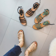2017夏季新款罗马凉鞋女交叉绑带平底鞋韩版露趾学生平跟女鞋子潮