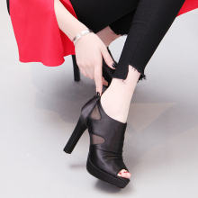 2017春季新款欧洲站时尚网纱细跟防水台鱼嘴鞋高跟鞋女单鞋罗马鞋