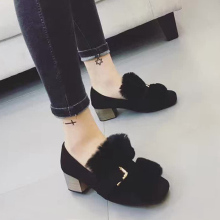 韩版秋冬女鞋兔毛中跟毛毛鞋欧美百搭新款休闲粗跟保暖女鞋深口鞋