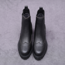 秋冬季布洛克雕花粗跟短靴女鞋厚底马丁靴女英伦风切尔西靴女靴子