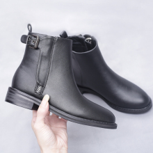 2016秋冬新款平底靴子女切尔西平跟单靴欧美圆头短靴马丁靴及踝靴