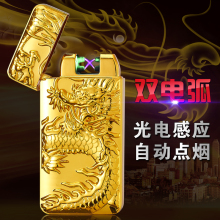 USB充电电子脉冲打火机 防风超薄龙纹点烟器创意个性双电弧打火机