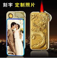 USB充电打火机 超薄防风充气打火机两用电子点烟器可刻字定制照片
