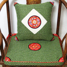 中式官帽椅圈椅红木沙发垫夏藤席椅垫实木沙发棕垫亚麻垫床头靠垫
