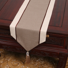 艺必旭桌旗新中式现代简约风格高档复古古典茶几布艺纯色棉麻桌旗
