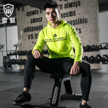 健身服男套装紧身衣男运动健身房跑步连帽运动套装速干长袖雷魅