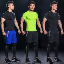 健身服 男 套装春秋速干短袖紧身衣健身房训练跑步服三件套 雷魅