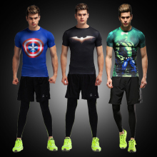 电影版健身套装男三件套高弹力拉风紧身衣健身房训练服跑步运动服