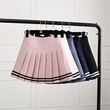 2017夏季新款学院风下摆条纹百褶裙高腰短裙半身裙女显瘦百搭可爱