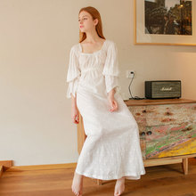 尘熙睡衣春夏复古宫廷超长袖款纯棉睡裙蕾丝睡衣白色简约女士