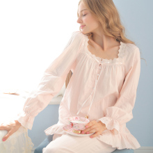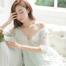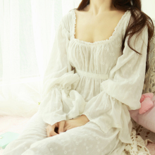 春夏纯棉复古宫廷睡衣公主可爱蕾丝睡裙女长袖薄露肩性感女神孕妇
