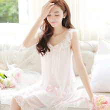 公主睡裙女夏季新款长袖复古宫廷蕾丝性感长裙韩版冰丝睡衣莫代尔