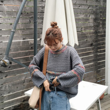 韩国ulzzang原宿风bf秋冬韩版潮宽松百搭套头圆领学生毛衣外套女